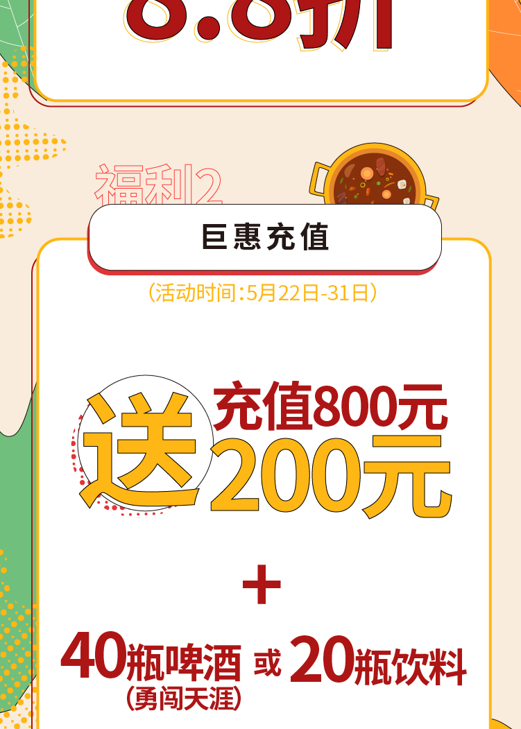 新店丨龙华红山6979店 8.8折、充800送200+40瓶啤酒饮料......
